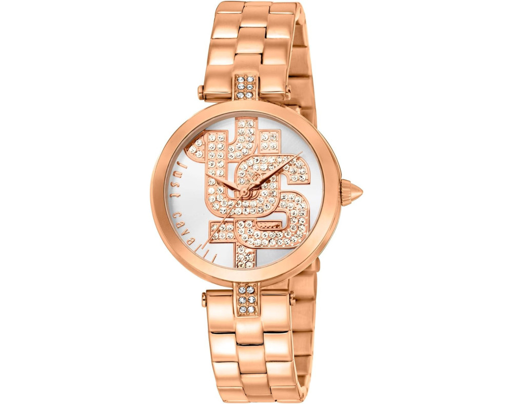Кварц Женщина Наручные часы Just Cavalli JC1L241M0075, корпус Нержавеющая сталь, диаметр 32 mm, Минеральная стекло, Серебро циферблат и Розовое золото Нержавеющая сталь ремешок.