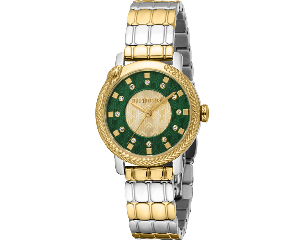 Кварц Женщина Наручные часы Roberto Cavalli RC5L116M0085, корпус Нержавеющая сталь, диаметр 30 mm, Минеральная стекло, Зеленый циферблат и Две тонны Нержавеющая сталь ремешок.