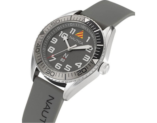 Кварц Мужчина Наручные часы Nautica NAPFWF202, корпус Нержавеющая сталь, диаметр 44 mm, Минеральная стекло, Серый циферблат и Серый Силикон ремешок.