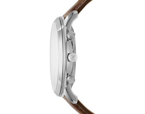 Armbanduhr Fossil Neutra FS5380 für Herren mit Quarzwerk, Uhrengehäuse aus Edelstahl mit einem Durchmesser von 44 mm, Ziffernblatt Beige und Uhrenarmband aus Leder in der Farbe Braun.