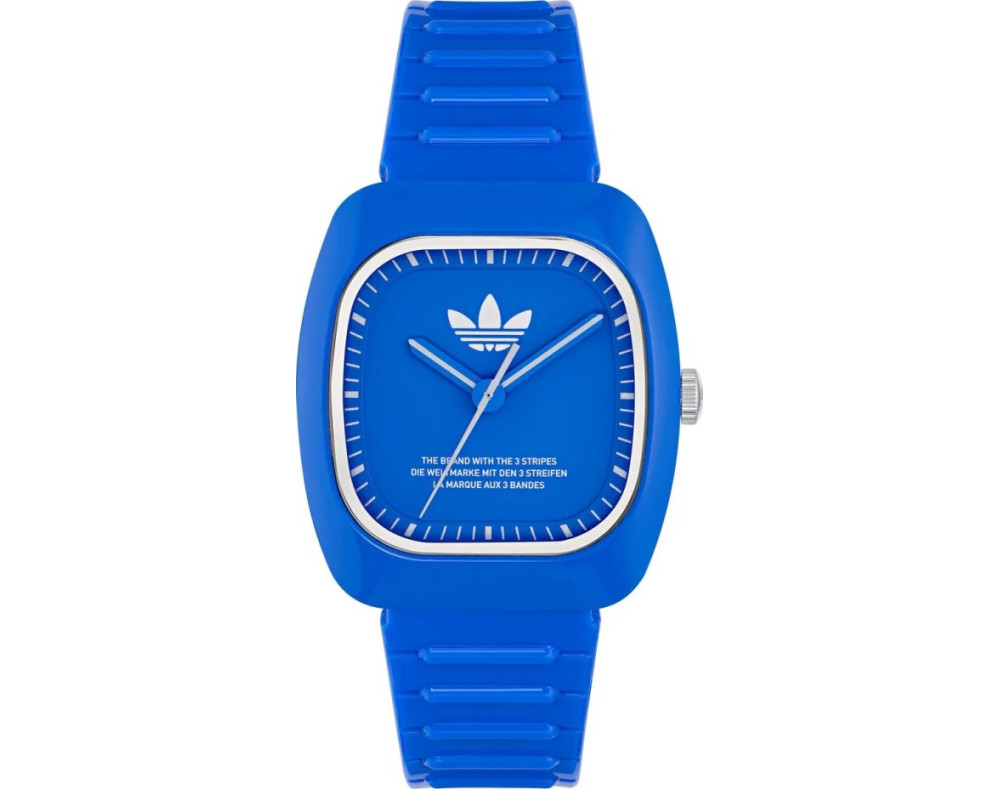 Armbanduhr Adidas Retro Wave Two AOSY24530 für Unisex mit Quarzwerk, Uhrengehäuse aus Keramik mit einem Durchmesser von 37 mm, Ziffernblatt Blau und Uhrenarmband aus Resin in der Farbe Blau.