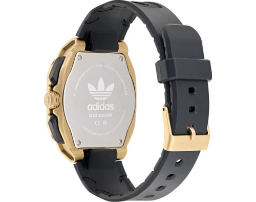 Armbanduhr Adidas City Tech Three AOFH24018 für Unisex mit Quarzwerk, Uhrengehäuse aus Edelstahl mit einem Durchmesser von 45 mm, Ziffernblatt Schwarz und Uhrenarmband aus Resin in der Farbe Schwarz.