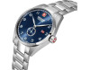 Armbanduhr Swiss Military Hanowa Lynx SMWGH0000705 für Herren mit Quarzwerk, Uhrengehäuse aus Edelstahl mit einem Durchmesser von 42 mm, Ziffernblatt Blau und Uhrenarmband aus Edelstahl in der Farbe Silber.