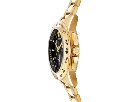 Armbanduhr Versace V-Sport VEKIA0725 für Herren mit Quarzwerk, Uhrengehäuse aus Edelstahl mit einem Durchmesser von 44 mm, Ziffernblatt Schwarz und Uhrenarmband aus Edelstahl in der Farbe Gold.