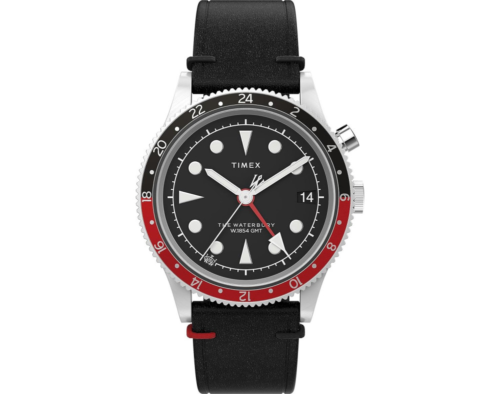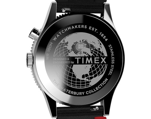 Armbanduhr Timex TW2W22800 für Herren mit Quarzwerk, Uhrengehäuse aus Edelstahl mit einem Durchmesser von 39 mm, Ziffernblatt Schwarz und Uhrenarmband aus Leder in der Farbe Schwarz.