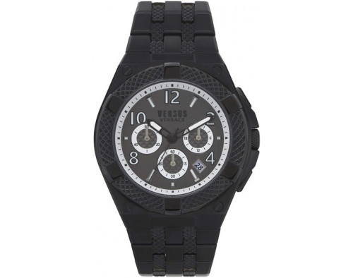 Kvarts Unisex Käekell Versace VE8P00724, Plastikust korpusega, läbimõõduga 44 mm, Safiiri töötlusega mineraal klaasist, Must sihverplaadi ja Must Plastikust rihm.