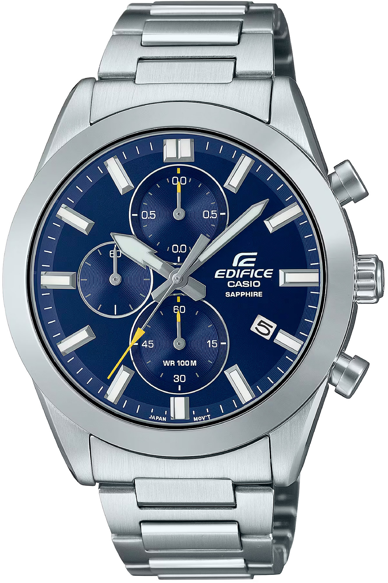 Kvarts Mees Käekell Casio Edifice EFB-710D-2AVUEF, Roostevaba teras korpusega, läbimõõduga 41 mm, Safiiri töötlusega mineraal klaasist, Sinine sihverplaadi ja Hõbedane Roostevaba teras rihm.