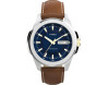 Kvarts Mees Käekell Timex TW2Y38100UK, Roostevaba teras korpusega, läbimõõduga 45 mm, Mineraal klaasist, Sinine sihverplaadi ja Pruun Nahk rihm.