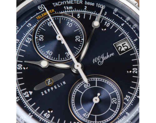 Kvarts Mees Käekell Zeppelin 8670-3, Roostevaba teras korpusega, läbimõõduga 42 mm, Mineraal K1 klaasist, Sinine sihverplaadi ja Sinine Nahk rihm.
