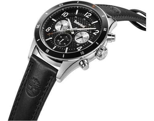Montre bracelet Timberland Hooksett TDWGF2201001 pour Homme à Quartz, avec une boîtier de Acier inoxydable d’un diamètre de 46 mm, avec un cadran Noir et avec un bracelet de Cuir en couleur Noir.