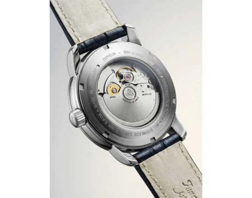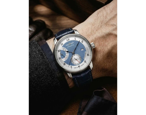 Montre bracelet Zeppelin Friedrichshafen 8590-3 pour Homme à Mécanique, avec une boîtier de Acier inoxydable d’un diamètre de 42 mm, avec un cadran Bleu clair et avec un bracelet de Cuir en couleur Bleu.