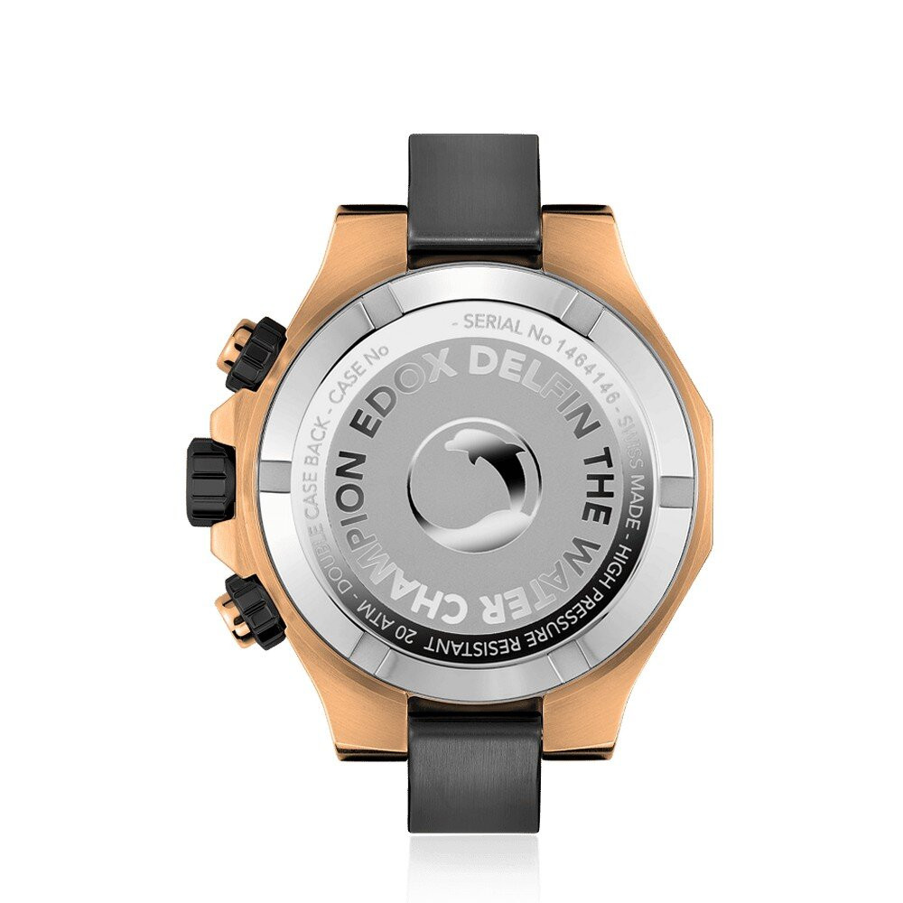 Quartz Man Wristwatch EDOX Delfin The Original 10113 37RNCA NIR with Stainless steel case, with diameter 43 mm, Black dial and Black Rubber band.