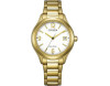Quartz Womens Wristwatch Citizen Eco-Drive FE6122-64A with Stainless steel case, with diameter 34 mm, White dial and Gold Stainless steel band.