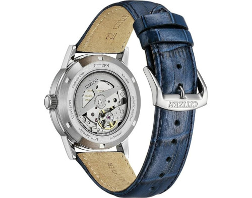 Mechanical Man Wristwatch Citizen NJ0210-13L with Stainless steel case, with diameter 40 mm, Blue dial and Blue Leather band.