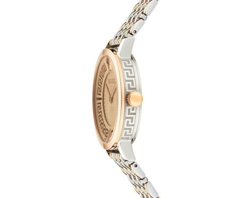 Orologio da polso Versace Greca Fortuna VE0A00425 Analogico Donna con movimento Al quarzo, cassa in Acciaio inossidabile di diametro 35 mm, quadrante Rosa, vetro Minerale con trattamento Zaffiro e cinturino in Acciaio inossidabile di colore Bicolore.