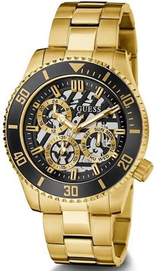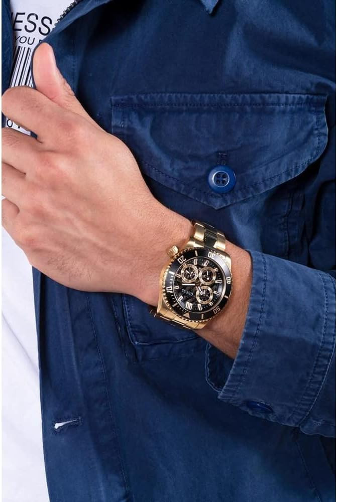 Orologio da polso Guess Axle GW0488G2 Analogico Uomo con movimento Al quarzo, cassa in Acciaio inossidabile di diametro 45 mm, quadrante Multicolore, vetro Minerale e cinturino in Acciaio inossidabile di colore Oro.