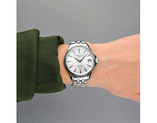 Orologio da polso Certina DS Action C032.051.11.036.00 Analogico Donna con movimento Al quarzo, cassa in Acciaio inossidabile di diametro 34 mm, quadrante Argento, vetro Minerale con trattamento Zaffiro e cinturino in Acciaio inossidabile di colore Argento.