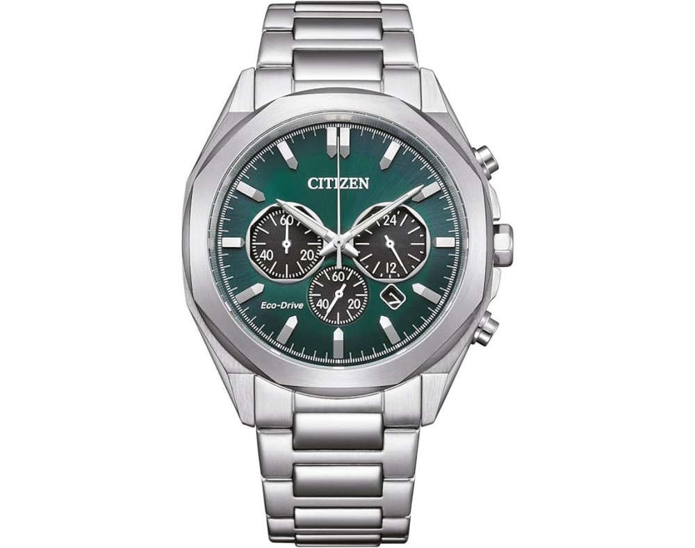 Orologio da polso Citizen Eco-Drive CA4590-81X Cronografo Uomo con movimento Al quarzo, cassa in Acciaio inossidabile di diametro 41 mm, quadrante Verde, vetro Minerale e cinturino in Acciaio inossidabile di colore Argento.