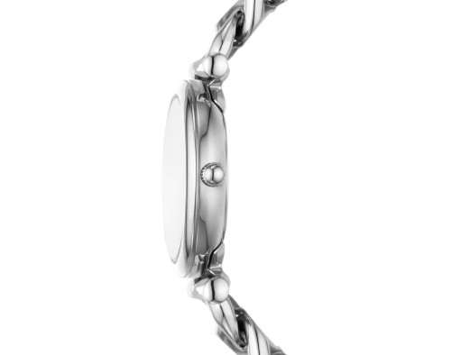 Kvarcas Moteris Rankinis laikrodis Fossil ES5331 su Nerūdijantis plienas dėklu, 28 mm skersmens, Mineralinis stiklas, Sidabras ciferblatu ir Sidabras Nerūdijantis plienas apyranke.