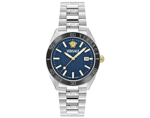 Kvarcas Vyras Rankinis laikrodis Versace VE8Q00424 su Nerūdijantis plienas dėklu, 40 mm skersmens, Mineralas su safyru stiklas, Mėlyna ciferblatu...