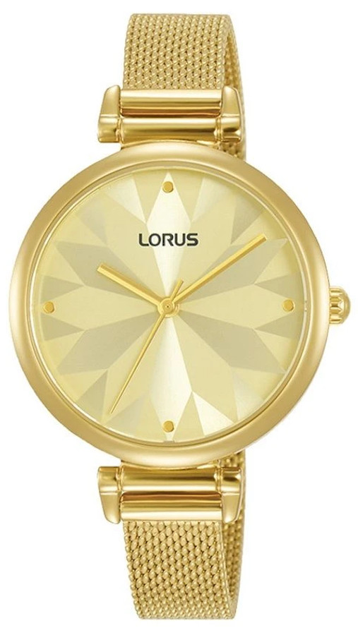 Kvarcas Moteris Rankinis laikrodis Lorus RG208TX9 su Nerūdijantis plienas dėklu, 32 mm skersmens, Mineralinis stiklas, Auksas ciferblatu ir Auksas Milano marškinėliai apyranke.