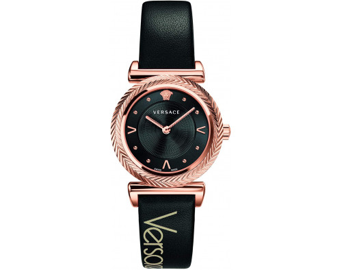 Kvarcas Moteris Rankinis laikrodis Versace VERE00818 su Nerūdijantis plienas dėklu, 36 mm skersmens, Mineralas su safyru stiklas, Juoda ciferblatu ir Juoda Oda apyranke.