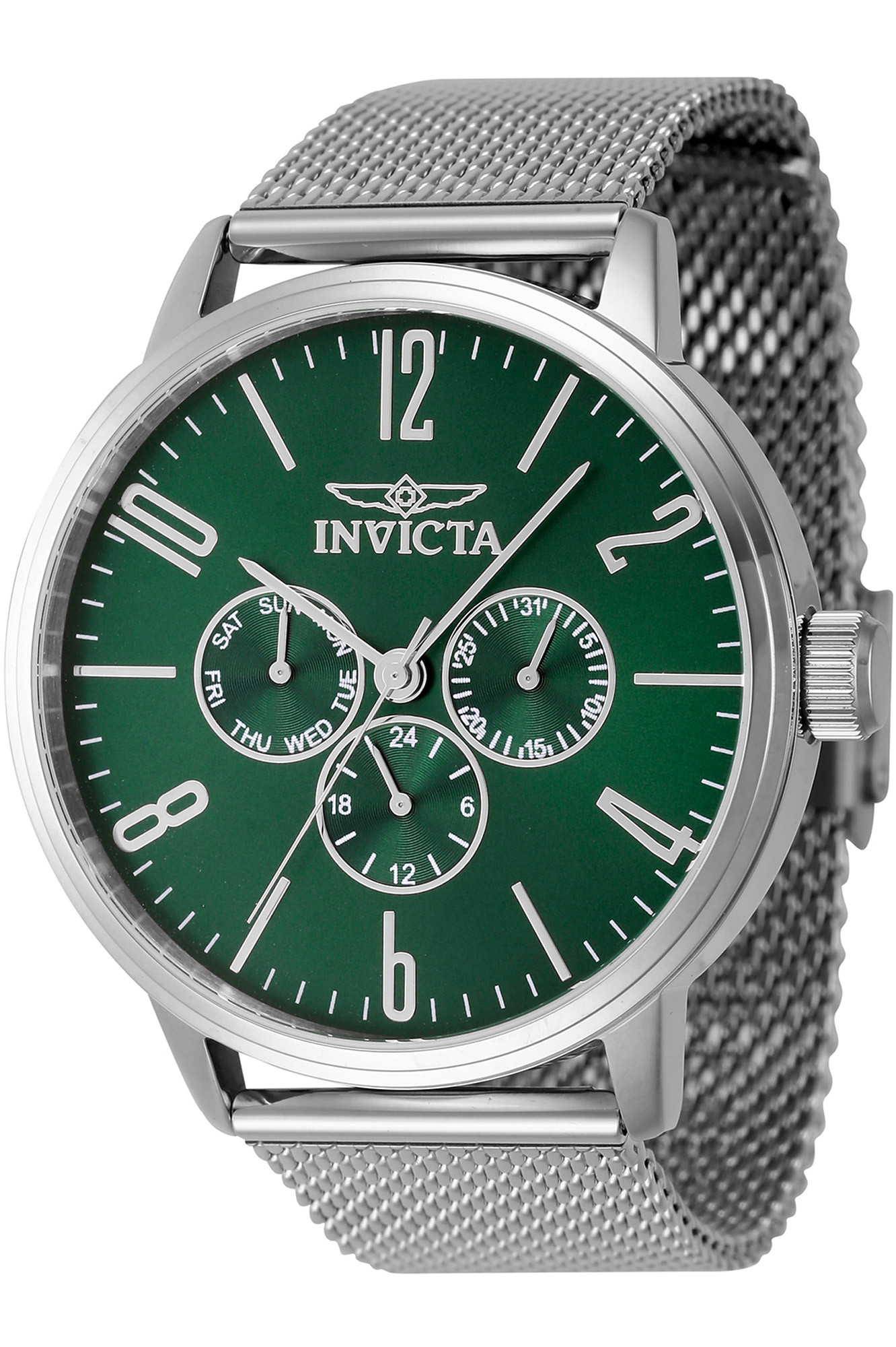 Kvarcas Vyras Rankinis laikrodis Invicta 47120 su Nerūdijantis plienas dėklu, 44 mm skersmens, Mineralinis stiklas, Žalias ciferblatu ir Sidabras Milano marškinėliai apyranke.