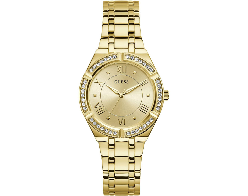 Kvarcas Moteris Rankinis laikrodis Guess GW0033L2 su Nerūdijantis plienas dėklu, 36 mm skersmens, Mineralinis stiklas, Auksas ciferblatu ir Auksas Nerūdijantis plienas apyranke.