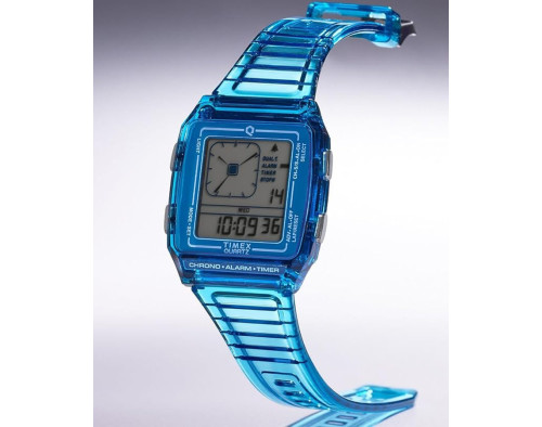 Kvarcas Unisex Rankinis laikrodis Timex TW2W45100 su Derva dėklu, 35 mm skersmens, Akrilas stiklas, Mėlyna ciferblatu ir Mėlyna Derva apyranke.