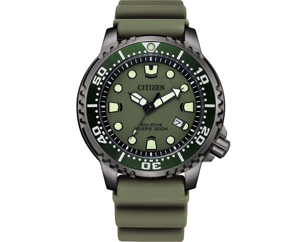 Kvarcas Vyras Rankinis laikrodis Citizen BN0157-11X su Nerūdijantis plienas dėklu, 44 mm skersmens, Mineralinis stiklas, Žalias ciferblatu ir Žalias Trintukas apyranke.