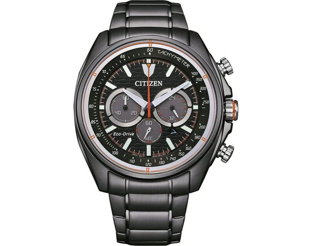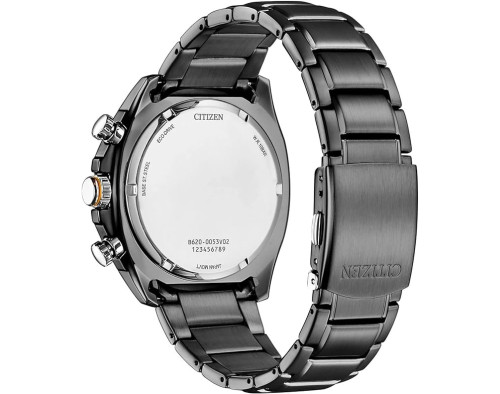 Kvarcas Vyras Rankinis laikrodis Citizen CA4567-82H su Nerūdijantis plienas dėklu, 45 mm skersmens, Mineralinis stiklas, Juoda ciferblatu ir Pilka Nerūdijantis plienas apyranke.