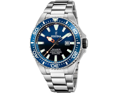 Kvarcs Cilvēks Rokas pulkstenis Nautica NAPNOF303 ar Nerūsējošais tērauds korpusu, ar diametru 48 mm, Minerāls stikls, Zils ciparnīcu un Sudrabs Nerūsējošais tērauds siksnu.