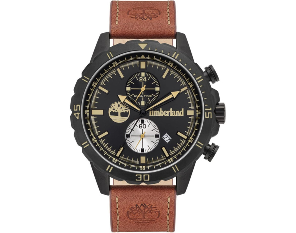 Кварц Мужчина Наручные часы Timberland TBL16003JYB02, корпус Нержавеющая сталь, диаметр 46 mm, Минеральная стекло, Черный циферблат и Коричневый Кожа ремешок.