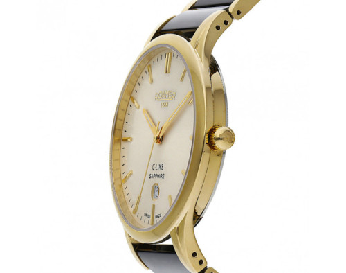 Кварц Мужчина Наручные часы Roamer 658833-48-35-61, корпус Нержавеющая сталь, диаметр 40 mm, Минерал с обработкой сапфиром стекло, Золото циферблат и Черный Керамический ремешок.