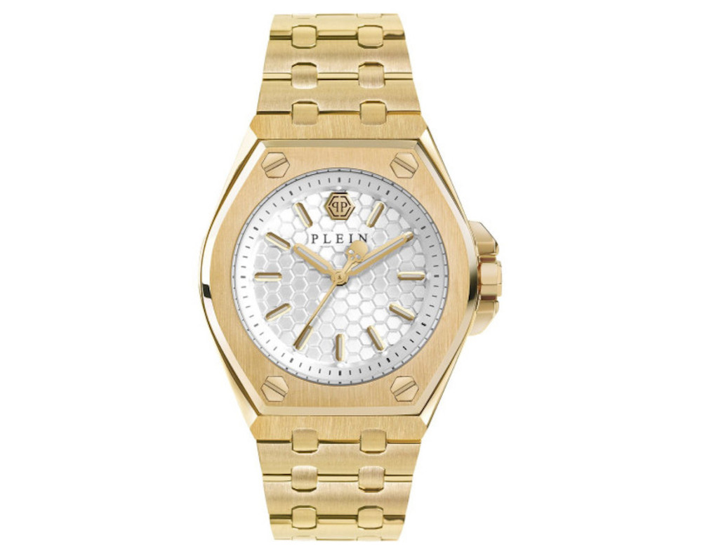 Кварц Женщина Наручные часы Philipp Plein PWJAA0722, корпус Нержавеющая сталь, диаметр 38 mm, Минеральная стекло, Белый циферблат и Золото Нержавеющая сталь ремешок.