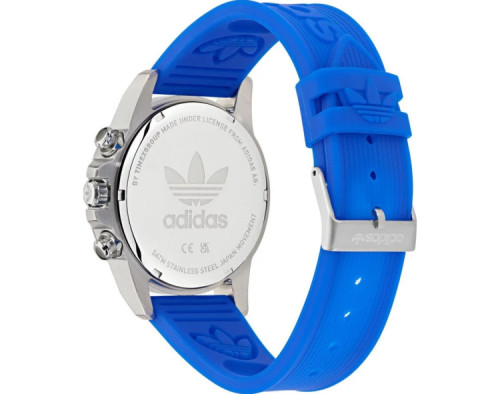 Кварц унисекс Наручные часы Adidas AOFH24520, корпус Нержавеющая сталь, диаметр 43 mm, Минеральная стекло, Белый циферблат и Синий Силикон ремешок.