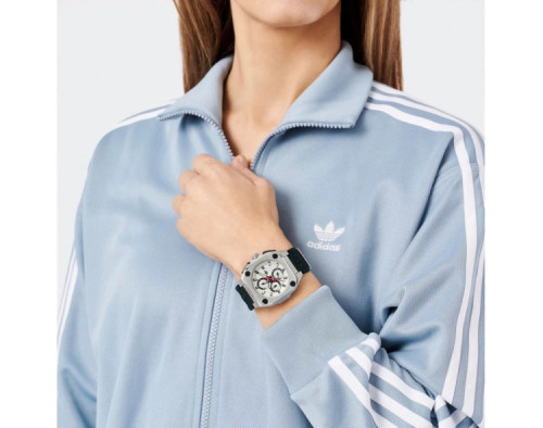 Кварц унисекс Наручные часы Adidas AOFH24017, корпус Нержавеющая сталь, диаметр 45 mm, Минеральная стекло, Серебро циферблат и Черный Смола ремешок.