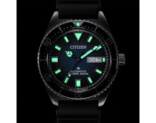 механический Мужчина Наручные часы Citizen NY0129-07LE, корпус Нержавеющая сталь, диаметр 41 mm, Минеральная стекло, Синий циферблат и Черный Ластик ремешок.