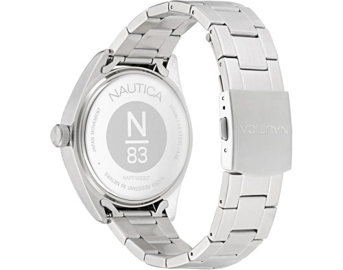 Кварц Мужчина Наручные часы Nautica NAPFWS307, корпус Нержавеющая сталь, диаметр 44 mm, Минеральная стекло, Синий циферблат и Серебро Нержавеющая сталь ремешок.