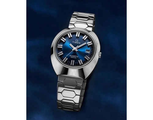 Кварц Мужчина Наручные часы Timex TW2Y33100UK, корпус Нержавеющая сталь, диаметр 39 mm, Минеральная стекло, Синий циферблат и Серебро Нержавеющая сталь ремешок.